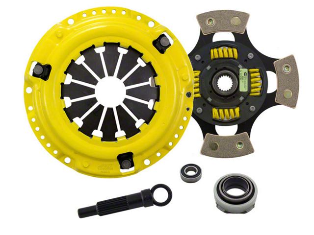 HW4-SPG4 kit features a Sport pressure plate for a nice upgrade. ACT Sport pressure plates use exclusive diaphragm design to increase clamp load, reduce deflection and maximize clutch life. All diaphragms endure a four-stage, heat-treating process for unparalleled performance. ACT pressure plates have precision cover stampings to provide rigidity and consistency. ACT's 4-pad spring-centered race disc features a spring-center construction to properly damp torsional vibrations for quieter operation and resist failure even under harsh conditions. ACT spring retainers utilize wraparound spring windows and thicker retainer stampings to provide spring support, reduce stress concentrations, and increase strength and reliability. With the 4-pad spring-centered race disc, engagement is harsher, but shifting is faster. ACT's 4-pad spring-centered race disc is well-suited for smaller disc sizes in smaller engines.