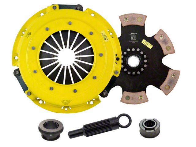 FM4-HDR6 kit features ACT's most popular Heavy Duty pressure plate. ACT Heavy Duty pressure plates use exclusive diaphragm design to increase clamp load, reduce deflection and maximize clutch life. All diaphragms endure a four-stage, heat-treating process for unparalleled performance. ACT pressure plates have precision cover stampings to provide rigidity and consistency. ACT's 6-pad rigid race discs are made with high quality, ceramic friction materials. The chrome-moly hub is heat-treated for strength and durability. The lightweight, rigid design allows for quicker shifts and smooth, trouble-free service. With the 6-pad rigid race disc, engagement is harsher, but shifting is faster. The 6-pad rigid race disc is recommended for larger clutch sizes to absorb more heat.