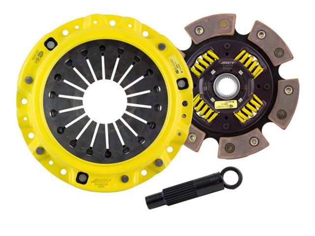 HS1-HDG6 kit features ACT's most popular Heavy Duty pressure plate. ACT Heavy Duty pressure plates use exclusive diaphragm design to increase clamp load, reduce deflection and maximize clutch life. All diaphragms endure a four-stage, heat-treating process for unparalleled performance. ACT pressure plates have precision cover stampings to provide rigidity and consistency. ACT's 6-pad, spring-centered race disc features a spring-center to properly damp torsional vibrations and resist failure under harsh conditions. ACT spring retainers utilize wraparound spring windows and thicker retainer stampings to provide spring support, reduce stress concentrations, and increase strength and reliability. With the 6-pad, spring-centered race disc, engagement is harsher, but shifting is faster. The 6-pad, spring-centered disc is recommended for larger clutch sizes to absorb more heat.