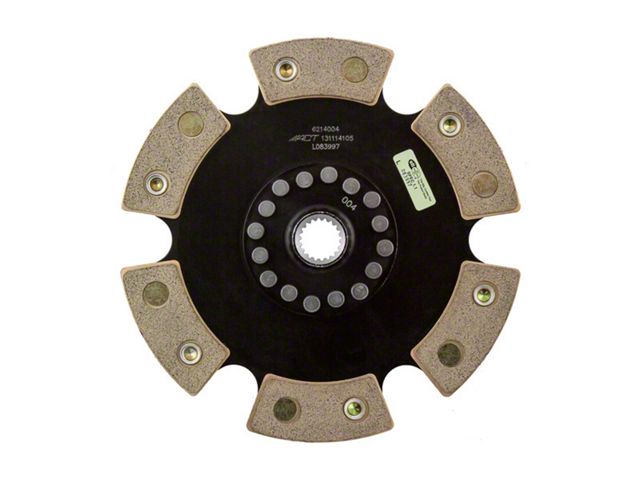 6214004 is a 6-pad rigid race disc made with high quality ceramic friction materials. The disc engagement is harsher, but shifting is faster. The race disc features top grade rivets to securely fasten the part together. The rivet design and materials are carefully selected for maximum strength. The 6-pad rigid race disc is recommended for larger clutch sizes to absorb more heat and for smoother engagement.