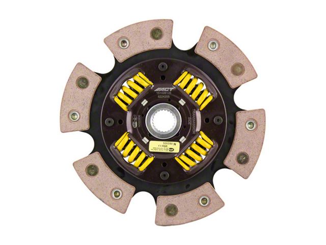6224205 is a 6-pad spring-centered race discs made with high quality ceramic friction materials. The engagement is harsher, but shifting is faster. The heavy duty torsional dampening springs are stronger, in most cases, than standard springs and are provided in the best sizes and spring rates to suit the application. The 6-pad, spring-centered disc is recommended for larger clutch sizes to absorb more heat and for smoother engagement.