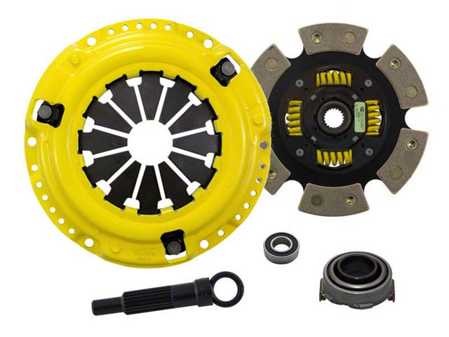 HC5-SPG6 kit features a Sport pressure plate for a nice upgrade. ACT Sport pressure plates use exclusive diaphragm design to increase clamp load, reduce deflection and maximize clutch life. All diaphragms endure a four-stage, heat-treating process for unparalleled performance. ACT pressure plates have precision cover stampings to provide rigidity and consistency. ACT's 6-pad, spring-centered race disc features a spring-center construction to properly damp torsional vibrations and resist failure under harsh conditions. ACT spring retainers utilize wraparound spring windows and thicker retainer stampings to provide spring support, reduce stress concentrations, and increase strength and reliability. With the 6-pad, spring-centered race disc, engagement is harsher, but shifting is faster. The 6-pad, spring-centered disc is recommended for larger clutch sizes to absorb more heat.