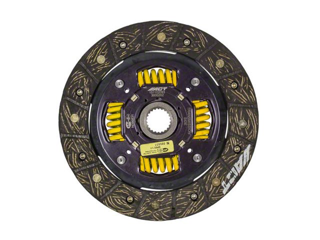 3000202 is a performance street disc and the most popular disc purchased. It features premium organic materials with high copper content for better heat transfer. Performance street discs allow for quicker shifting and smooth engagement. These discs feature a reduced marcel for faster shift action to complement ACT pressure plates. ACT spring-centered assemblies use bushings and cone springs similar to factory clutch discs. This creates frictional dampening, which improves clutch life and reduces noise. Quiet operation with increased strength and reliability.