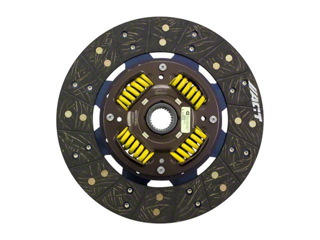 3000903 is a performance street disc and the most popular disc purchased. It features premium organic materials with high copper content for better heat transfer. Performance street discs allow for quicker shifting and smooth engagement. These discs feature a reduced marcel for faster shift action to complement ACT pressure plates. ACT spring-centered assemblies use bushings and cone springs similar to factory clutch discs. This creates frictional dampening, which improves clutch life and reduces noise. Quiet operation with increased strength and reliability.