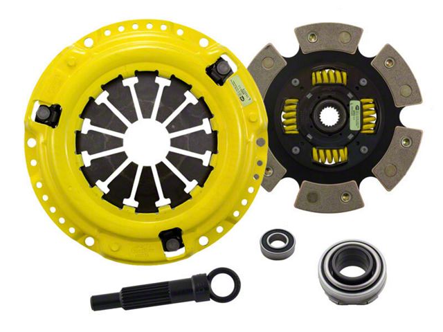 HC4-XTG6 kit features an Xtreme pressure plate for the most demanding driver. ACT Xtreme pressure plates use exclusive diaphragm design to increase clamp load, reduce deflection and maximize clutch life. All diaphragms endure a four-stage, heat-treating process for unparalleled performance. ACT pressure plates have precision cover stampings to provide rigidity and consistency. ACT's 6-pad spring-centered race disc features a spring-center construction to properly damp torsional vibrations and resist failure under harsh conditions. ACT spring retainers utilize wraparound spring windows and thicker retainer stampings to provide spring support, reduce stress concentrations, and increase strength and reliability. With the 6-pad spring-centered race disc, engagement is harsher, but shifting is faster. The 6-pad spring-centered disc is recommended for larger clutch sizes to absorb more heat.