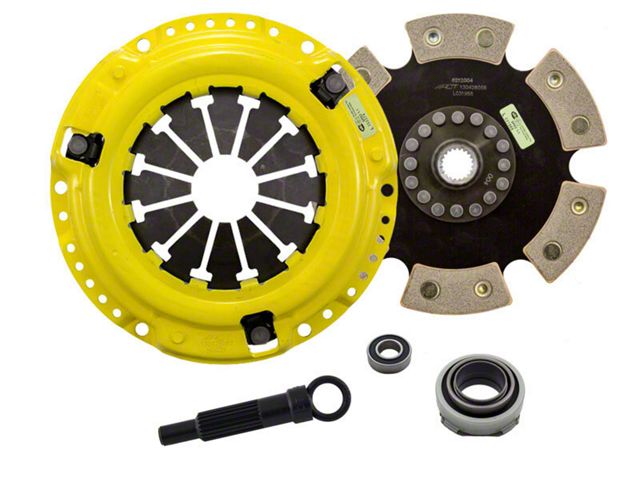 HW4-XTR6 kit features an Xtreme pressure plate for the most demanding driver. ACT Xtreme pressure plates use exclusive diaphragm design to increase clamp load, reduce deflection and maximize clutch life. All diaphragms endure a four-stage, heat-treating process for unparalleled performance. ACT pressure plates have precision cover stampings to provide rigidity and consistency. ACT's 6-pad rigid race discs are made with high quality, ceramic friction materials. The chrome-moly hub is heat-treated for strength and durability. The lightweight, rigid design allows for quicker shifts and smooth, trouble-free service. With the 6-pad rigid race disc, engagement is harsher, but shifting is faster. The 6-pad rigid race disc is recommended for larger clutch sizes to absorb more heat.