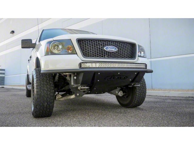 The ADD Lite bumper is stout, yet easy on the wallet. This bumper features our brand new patent pending Universal Lighting System. This will allow you to put several different types of lights and configurations on your bumper. You can now mount radius bars, straight bars, and cubed lights. Mix, match, and make combo choices. The ADD Lite bumper contours the front of you truck, includes a low profile skid plate that does not attach to the truss, which allows for a suspension kit to be installed. Like all ADD products, this is 100% bolt on. Universal Lighting System. Skid plate allows for multiple lift kit options. Optional top hoop.