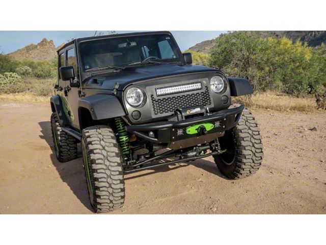 The ADD Venom line for Jeep JK is designed with a sleek, subtle look that maintains factory lines. 100% bolt on. Winch mount inside the bumper in an effort to not block air flow to the radiator. One cube light cutout on each side of the winch. There is a top plate option to cover the winch compartment for non-winch application. Non-winch application allows for a 20" light bar. Made from .120 wall tubing and aluminum panels.
