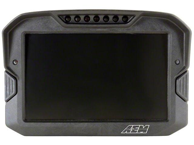 AEM CD5 Carbon Flat Panel Digital Displays are perfect for flush mount installation or in-dash enclosures with tight tolerances. They include all of the robust features found in the original CD-5 Carbon car dashboard monitors, but do not have buttons or an LED shade hood built into the enclosure. AEM CD5 Carbon Flat Panel Digital Displays feature full-color, daylight readable screens surrounded by a slim, tough, lightweight flow-molded carbon fiber composite housing. Seven ultra-bright LEDs span the top of the display housings for RPM and shift light indication. Users can program them to ascend in specific increments based on RPM range and flash when it is time to shift. Brightness is user programmable on the fixed color LEDs. A remote button kit (PN 30-3610, sold separately) easily wires into the CD Carbon wiring harness and allows users to change pages and clear memory. Two additional programmable LEDs are included in the car dashboard monitor's enclosure and are fully programmable