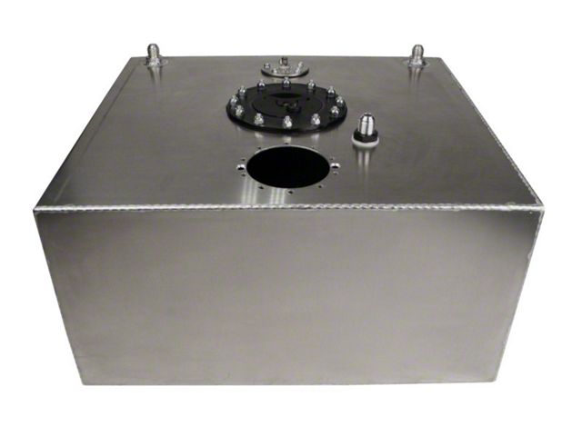 Does not include Fuel Pump module. 15 Gallon Capacity. Return Line Provision. (2) AN-08 Vents with Rollover Valves. 0-90 Ohm Universal Sending Unit. Standard 12-Bolt Flush Mount Lid Assembly. Natural Aluminum FinishDimensions: 20"L x 18"W x 10"H.