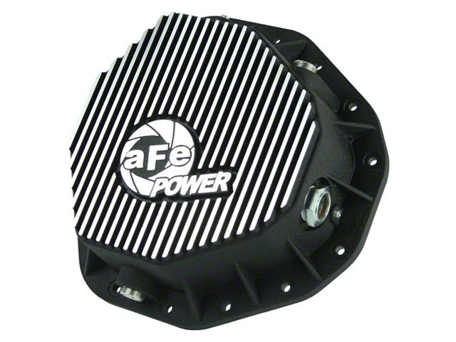 aFe Powers new rear differential cover brings performance engineering to the protection of your axles differential. This differential cover is constructed out of durable die cast A380 aluminum with reinforced ribs and wrinkle black powder coating for maximum strength and styling. This cover comes with all necessary hardware and includes an o-ring for a leak free seal. This cover has about a 3-1/2 quart lube capacity at the factory line. Built-in internal and external fins transfer heat from the fluid to the outside air for maximum cooling. This system incorporates a large magnetic drain and fill plug that captures loose particles for maximum rear-end protection. Pre-installed large oil level sight glass with calibration plug set to the factory fluid level to eliminate overfilling.