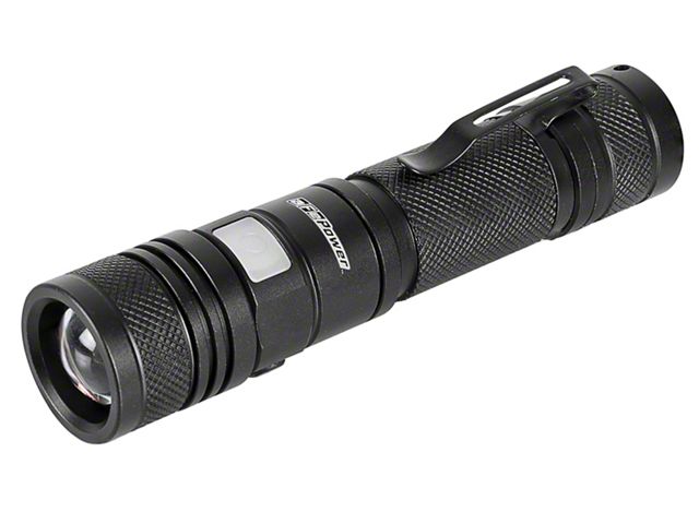 Put some powerful light on your subject with aFe Power's super bright CREE LED 950 lumen flashlight. This compact flashlight features a water and shock proof, anti-slip textured aluminum body and adjustable permeable optical glass to increase brightness. Perfect for wrenching in the garage and outdoor use, the aFe Power LED flashlight is rechargeable through a built-in Micro USB port and features 5 light modes: high, middle, low, strobe and SOS. Fully zoomable from wide to narrow beam and can run up to 2 hours per charge on high mode.