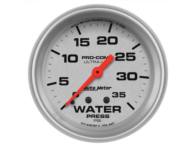 From high banked ovals to Saturday night 1/4 miles, knowing that you've got proper cooling system pressure is critical in any severe service application. AutoMeter's Mechanical Water Pressure Gauge utilizes the most precise bourdon tube meter movement on the market to deliver accuracy and durability you won't find anywhere else. An 1/8" NPT connection on the back makes for easy installation and nylon line and fittings are included.