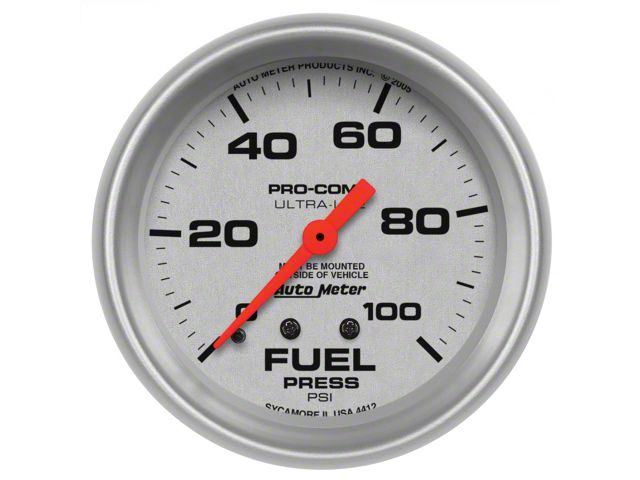 Seeing the exact fuel pressure on your vehicle can mean the difference between extracting the most performance safely and expensive failures. AutoMeter's Mechanical Fuel Pressure Gauge will precisely measure your exact fuel pressure at levels of accuracy previously unheard of even in professional gauges. Designed for fuel injected or carbureted applications, a simple -4an connection makes installation easy. Don't take chances with your investment; a precise fuel pressure gauge could be the cheapest insurance you've ever bought. For the safety of the operator, it is not recommended that Fuel Pressure gauge are installed inside the cabin of the vehicle. Optional fuel isolators are available for both carbureted and fuel injected applications.