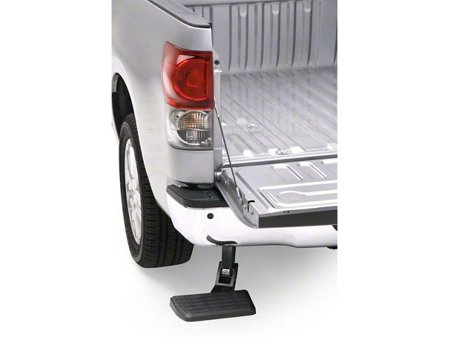 Go ahead and step on it. Bedstep is a real time saver. Not to mention knee and back saver. Strong and rugged, this non-slip, retractable bumper step quickly flips down with the nudge of a foot providing a faster, easier and safer way to load or unload your pickups cargo. Supports up to 300 lbs. Frame mounts under the rear bumper so it works even with an open tailgate or when towing.