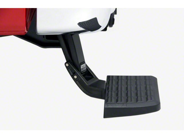 Side steps for hard-working trucks. The AMP Research Bedstep2 mounts just behind the cab, forward of the rear wheel, providing a faster, easier and safer route to access toolboxes, equipment and cargo in the bed. Easily installed, this frame-mounted, retractable truck step can be mounted on either side of the truck box, and it flips down or retracts with just the nudge of your foot.