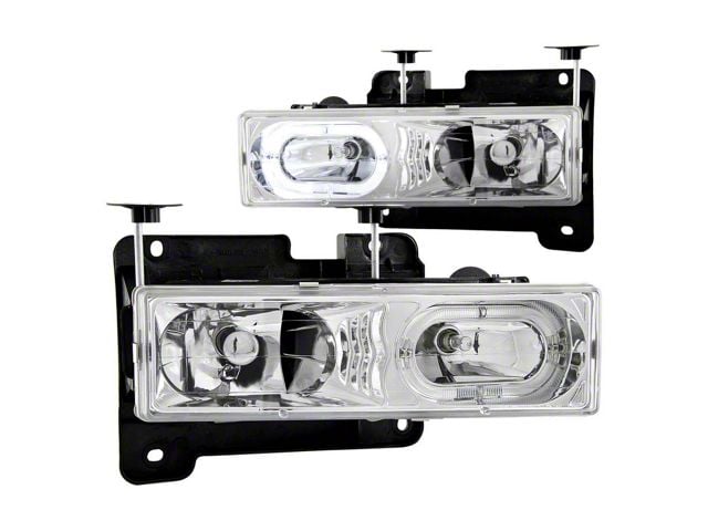 ANZO 1988-1998 Chevrolet C1500 Crystal Headlights Chrome w/ Halo