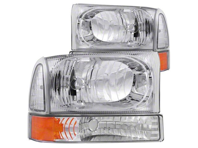 ANZO 2000-2004 Ford Excursion Crystal Headlights Chrome w/ Corner Lights 2pc