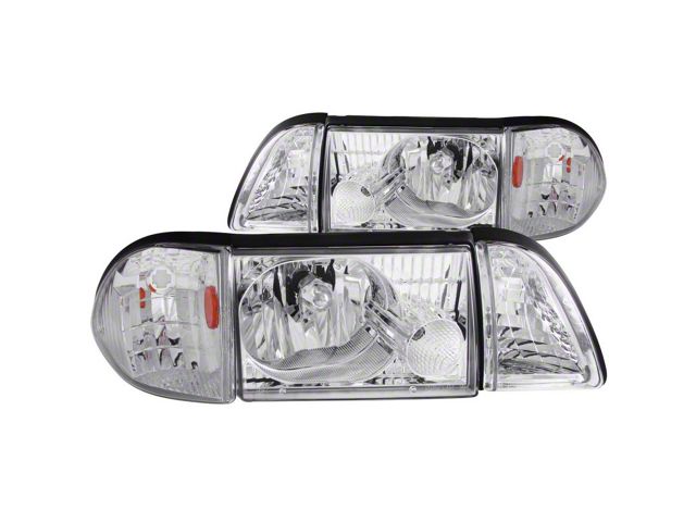 ANZO 1987-1993 Ford Mustang Crystal Headlights Chrome w/ Corner Lights 2pc