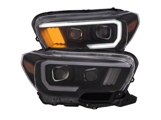 ANZO 2016-2017 Toyota Tacoma Projector Headlights w/ Plank Style Black w/ Amber