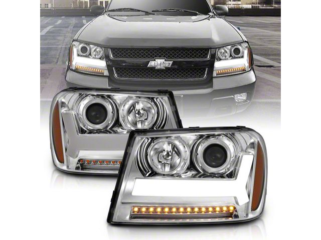 ANZO 2006-2009 Chevrolet Trailblazer Projector Headlights w/ Plank Style Design Chrome w/ Amber
