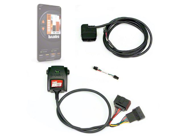 What Is It? PedalMonster is the first OBD-II connected throttle sensitivity controller for gas and diesel vehicles. Controlled via Banks iDash or mobile app, PedalMonster is the only module of its kind to offer safety features like ActiveSafety, Reverse Safety and Adjustable Low-Speed Trim. City, Sport, and Track modes, each with 10 sensitivity levels; OBD-II connected; ActiveSafety failsafe circuitry with Health Monitoring; Reverse safety returns pedal to stock in reverse gear; Adjustable Low-Speed Trim controls how fast sensitivity is added at slow speeds; Powered by +12V via OBD, not low-overhead pedal circuit; Controlled by iDash DataMonster, iDash SuperGauge, and mobile app; PedalMonster stacks with any flash or inline tuner!!! Not just Banks; View PedalMonsters activity in real-time via iDash and mobile app; Simple plug-and-play installation; Warranty friendly. Does not leave footprint after removal. US Patent #10,933,885