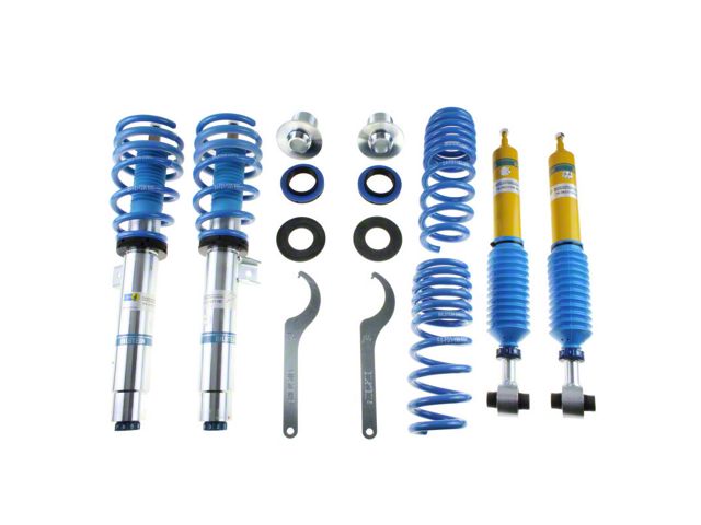Bilstein B16 (PSS10) suspension kits feature ride height adjustability with 10-stage manually adjustable dampers in an OE quality, direct fit package. The 10-stage damping system adjusts both rebound and compression with each click to provide the best handling performance in any condition. These kits offer monotube performance dampers with matched springs that are tuned for each specific application. The zinc coated and threaded body design will give you the flexibility to find the perfect ride height setting for your intended use while providing unsurpassed protection against the harshest road elements. B16 (PSS10) suspension kits are made in Germany and feature technology tested on the famed Nürburgring.