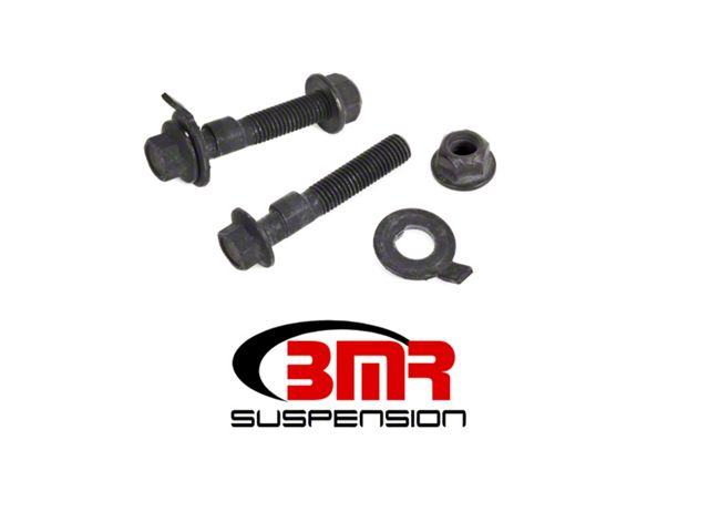 Correct front wheel alignment and add camber adjustability to the front of your S550 Mustang with Camber Bolts from BMR Suspension. The factory camber adjustability can be insufficient once your car is lowered, leading to poor handling and premature tire wear. Forged from high-strength steel, BMR's Camber Bolts give you unrivaled strength and precision. The BMR Camber Bolts give you 2.5 degrees of additional camber adjustability on the front of your S550 Mustang. This allows you to achieve the proper camber settings on lowered vehicles, or more aggressive front alignment setting for hardcore handling applications. BMR Suspension designed the FC003 Camber Bolts for street performance, drag race, and handling applications. The FC003 assembly is precision machined, giving you the ability to make precise alignment changes. Whether you drag race, road race, or simply drive your car on the street, BMR's FC003 is perfect for any car in need of additional camber adjustability. BMR Suspension's FC003 camber bolts are available in a durable black oxide finish for long-lasting good looks. Installation time is about 1 hour. Proudly made in the U.S.A.