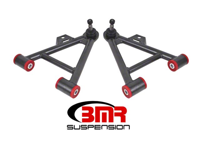 A-arms are one of the most important, yet overlooked suspension components. They are the direct link between the front wheels and the chassis. Any deflection causes a change in alignment, which results in poor performance and driving feel. Fabricated from heavy-duty 1.5-inch, 0.095-inch wall and 1.25-inch, 0.095-inch wall DOM tubing, deflection is eliminated with A-arms from BMR Suspension. BMR's AA038 Lower A-arms are equipped with greasable, 95-durometer polyurethane bushings. Polyurethane bushings add a solid, more responsive feel over the stock rubber bushings. BMR's bushings are internally fluted, which allows grease to evenly coat the inner sleeve. These flutes also direct grease to the outer edge of the bushing, keeping the thrust surface lubricated. This efficient lubrication ensures quiet, reliable operation over the life of the bushings.