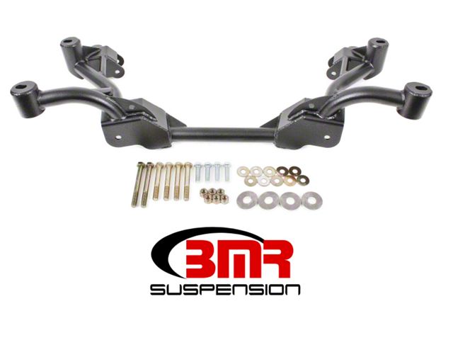 Reduce weight, increase frontend rigidity, and add clearance for large-tube headers and turbo kits with a Tubular K-members from BMR Suspension. BMR Tubular K-Members are designed to provide a lightweight alternative to the heavy and bulky factory K-member. Manufactured from 1-1/2-inch x 0.120 wall DOM steel tubing and 3/16-inch laser cut, CNC-formed steel plate, BMRs K-members give you a lightweight, extremely strong K-member. Every BMR K-member is 100-percent bolt-in and requires no modifications for fitment. The K-members are built with provision for either factory or manual steering racks.Designed for street performance, drag race, and road race applications, BMR Suspensions Tubular K-members drop weight and add loads of structural rigidity. The unique K-member design feature integrated engine mounts that weigh significantly less than factory engine mounts. This additional weight reduction allows BMR to use larger diameter tubing and thicker mounting plates for additional strength over other companies K-members. When combined with BMRs lower A-arms, a minimum weight reduction of over 30 pounds is common. With other lightweight frontend parts, weight reduction of up to 100 pounds is easily achievable.BMR Suspensions KM006 Tubular K-Member is available in black hammertone and red powdercoat for long-lasting good looks. Installation time is about 4-5 hours. Proudly made in the U.S.A.!NOTE: Not compatible with OE lower control arms.