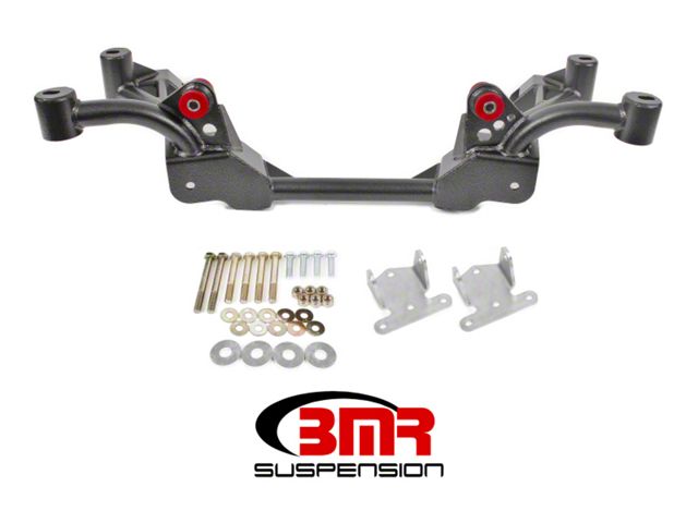 Reduce weight and increase frontend rigidity in your 3rd gen F-body with a K-member from BMR Suspension. BMR K-Members are designed to provide a lightweight alternative to the heavy and bulky factory K-members. Manufactured from 1-1/2-inch x 0.120 wall DOM steel tubing and 3/16-inch laser cut, CNC-formed steel plate, BMR Suspension gives you a lightweight, extremely strong K-member. Every BMR K-member is 100-percent bolt-in and requires no modifications for fitment. The KM007 K-member is designed to be used with the factory steering links.Designed for street performance, drag race, and road race applications, BMR K-members drop weight and add loads of structural rigidity. BMRs unique K-member design features integrated engine mount that replace the heavy factory engine mounts. This additional weight reduction allows BMR to use larger diameter tubing and thicker mounting plates for additional strength over other available K-members. When combined with BMRs upper and lower A-arms, a weight reduction of 42 pounds is common. With other lightweight frontend parts, weight reduction of up to 100 pounds is easily achievable. This K-member works with your stock engine or you can easily swap to a traditional SBC or BBC engine with no fabrication.BMR Suspensions KM007 K-Member is available in black hammertone and red powdercoat for long-lasting good looks. Installation time is about 4-5 hours. Proudly made in the U.S.A.!NOTE: Not compatible with OE A-arms.