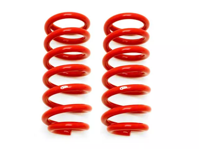 There is nothing like the aggressive look of a car with the right stance! Over time, stock springs sag, get rusty, and simply wear out. BMR Suspension believes the right springs go beyond looks—your F-body needs to perform, too! All BMR springs are manufactured from chrome silicon high-tensile spring wire, and are cold wound on a CNC coiling machine. The CNC coiling head can adjust the spring diameter in real time to ensure that every spring is exactly the same. This guarantees that your right spring matches your left spring. Every BMR spring is compressed solid at the factory, not once, but twice. This gives the spring its permanent set, and guarantees no sag. BMR springs are stress-relieved at 750 degrees F, ensuring most stresses induced during the winding process are eliminated. All springs are then shot-peened to eliminate residual surface stresses. Many spring manufacturers skip this step, but BMR insists on this operation as part of our spring manufacturing process. Every spring is computer tested as the last step—every spring, not just a sample from each batch. Each spring is loaded in the spring tester at the factory, then compressed and the CNC load cell measures the force for a variety of spring lengths. This allows BMR to offer a LIFETIME WARRANTY against spring sag. Blending aesthetics and performance, BMR has designed the SP002 for the street performance crowd who want to use their cars in a variety of application. These springs will drop the front end of your GM F-body 1.25-inches, and feature a fine-tuned spring rate to give you great handling and a smooth ride. The linear spring rate offers plenty of support, keeping the body flat and level in the corners, while remaining soft enough for a comfortable ride on any road. When performance and looks are a must, rely on BMR Suspension! Front spring rates - 550 lbs/in linear.