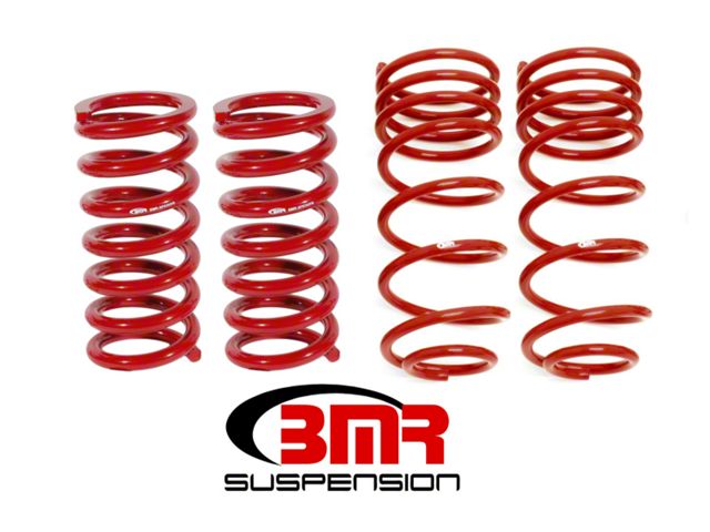 There is nothing like the aggressive look of a car with the right stance! Over time, stock springs sag, get rusty, and simply wear out. BMR Suspension believes the right springs go beyond looks—your F-body needs to perform, too! All BMR springs are manufactured from chrome silicon high-tensile spring wire, and are cold wound on a CNC coiling machine. The CNC coiling head can adjust the spring diameter in real time to ensure that every spring is exactly the same. This guarantees that your right spring matches your left spring. Every BMR spring is compressed solid at the factory, not once, but twice. This gives the spring its permanent set, and guarantees no sag. BMR springs are stress-relieved at 750 degrees F, ensuring most stresses induced during the winding process are eliminated. All springs are then shot-peened to eliminate residual surface stresses. Many spring manufacturers skip this step, but BMR insists on this operation as part of our spring manufacturing process. Every spring is computer tested as the last step—every spring, not just a sample from each batch. Each spring is loaded in the spring tester at the factory, then compressed and the CNC load cell measures the force for a variety of spring lengths. This allows BMR to offer a LIFETIME WARRANTY against spring sag. Blending aesthetics and performance, BMR has designed the SP096 for the street performance crowd who want to use their cars in a variety of application. These springs will drop your GM F-body 1.25-inches. These springs feature a fine-tuned spring rate to give you great handling and a smooth ride. The linear spring rate offers plenty of support, keeping the body flat and level in the corners, while remaining soft enough for a comfortable ride on any road. When performance and looks are a must, rely on BMR Suspension! BMR Suspension's SP096 lowering springs are available in red powdercoat for long-lasting good looks. Installation time is about 3-4 hours. Proudly made in the U.S.A.