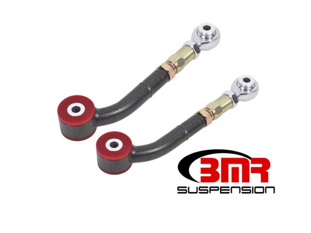 Launching harder, reducing wheel hop, and adding cornering consistency to your 2008-2019 Dodge Challenger is easy with upper trailing arms from BMR Suspension. Stock stamped steel trailing arms with soft rubber bushings deflect under load and absorb power instead of transferring it to the tires. BMRs rod ended, on-car adjustable trailing arms for Challengers(UTA112) are manufactured from heavy-duty 1-inch DOM steel tubing with TIG-welded Chrome-moly tube adapters. This design gives you a strong trailing arm that eliminates deflection and greatly improves performance. The UTA112 features zinc-plated two-piece, X-series, heat-treated, chrome-moly, self-lubricating, Teflon-lined rod ends. It also features 304 stainless steel, custom designed rod end spacers. This design provides reduced deflection, increased articulation, and an all-around improvement in performanceBMR Suspension designed the UTA112 to work well in street performance, drag race, and road race applications. The stock trailing arms flex under cornering loads giving you inconsistent handling characteristics. Combine this with soft bushings that have massive amounts of deflection and youre left with poor performance. The UTA112s heavy-duty construction eliminates trailing arm flex, giving you much improved repeatability on the street, starting line, or in the corners. BMRs rod ends allows for fine-tuning and bind-free suspension articulation needed for superior handling at any power level. When performance is a must, rely on BMR Suspension!BMR Suspensions UTA112 on-car adjustable upper trailing arms are available in red and black hammertone powdercoat for long-lasting good looks. Installation time is about 2 hours. Proudly made in the U.S.A.