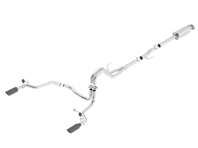 EXCEPT Raptor. Add Adapter 60556 for Crew Cab with Standard Bed (6' 7") 156.8" wheelbase, or Adapter 60564 for Ext. Cab with Long Bed (8' 2") 163.7" wheelbase. This system features the aggressive ATAK(r) sound and 4" Black Chrome on T-304 stainless steel tips. Using BORLA(r) Stainless Steel Polish p# 21461 is NOT recommended with these black chrome tips. We suggest cleaning the tips with hot water and a microfiber cloth. BORLA(r) Cat-Back(tm) and Axle-Back exhaust systems feature patented straight-through and multi-core technology designed to unleash hidden horsepower. Increased exhaust velocity adds power, driving excitement, fuel economy, and the distinctive BORLA(r) Sound of Power respected by motoring enthusiasts everywhere. Each system is built from premium, high-quality T-304 stainless steel, superior to T-400 series knockoffs (such as 409), to give you the absolute best in performance and durability. Ultra-smooth mandrel bends ensure maximum flow & power, and precision computer numerical control (CNC) manufacturing ensures an accurate fit. Best of all, BORLA(r) stands behind every system with a Million-Mile Warranty. Just what you'd expect from the world's most experienced (and most winning) exhaust brand.