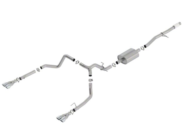 Factory Split Rear Exit ONLY. This system features 3.5" X 3.28" bright chrome on T-304 stainless steel tips. Add Adapter 60708 for Crew Cab with Standard Bed (6' 7") 157" Wheelbase vehicles. BORLA(r) Cat-Back(tm) & Axle-Back exhaust systems feature patented straight-through and multi-core technology designed to unleash hidden horsepower. Increased exhaust velocity adds power, driving excitement, fuel economy, and the distinctive BORLA(r) Sound of Power respected by motoring enthusiasts everywhere. Each system is built from premium T-304 stainless steel, superior to T-400 series knockoffs (such as 409), to give you the absolute best in performance and durability. Ultra-smooth mandrel bends ensure maximum flow & power, and precision computer numerical control (CNC) manufacturing ensures an accurate fit. Best of all, BORLA(r) stands behind every system with a Million-Mile Warranty. Just what you'd expect from the world's most experienced (and most winning) exhaust brand.