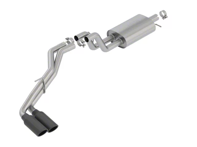 This system features 4" black chrome on T-304 stainless steel tips. Using BORLA Stainless Steel Polish p# 21461 is NOT recommended with these black chrome tips. We suggest cleaning the tips with hot water and a microfiber cloth. BORLA Cat-Back Axle-Back exhaust systems feature patented straight-through and multi-core technology designed to unleash hidden horsepower. Increased exhaust velocity adds power, driving excitement, fuel economy, and the distinctive BORLA Sound of Power respected by motoring enthusiasts everywhere. Each system is built from premium T-304 stainless steel, superior to T-400 series knockoffs (such as 409), to give you the absolute best in performance and durability. Ultra-smooth mandrel bends ensure maximum flow& power, and precision computer numerical control (CNC) manufacturing ensures an accurate fit. Best of all, BORLA stands behind every system with a Million-Mile Warranty. Just what you'd expect from the world's most experienced (and most winning) exhaust brand.