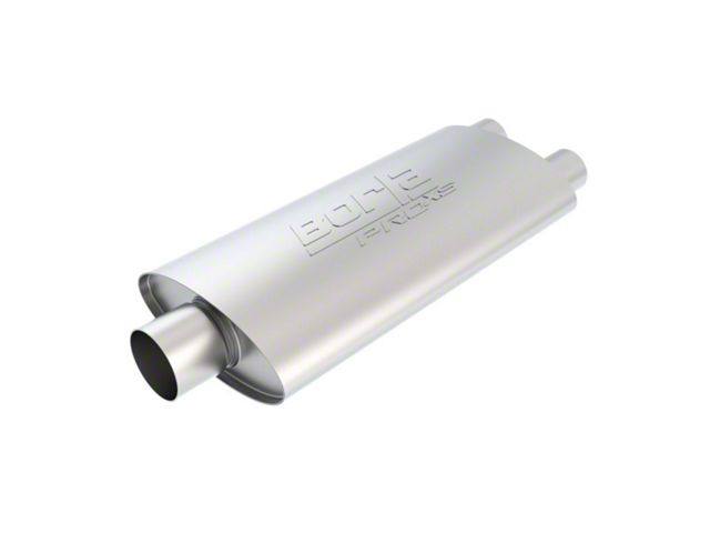Single inlet and dual outlet. Reversible design for installation flexibility. This muffler is generally used in a system that has a single inlet and dual outlets, but it can also be installed in a system with dual inlets and a single outlet. High-quality T-304 austenitic Stainless steel will never rust. 100% welded construction for strength. Free Flow design for improved performance. High-temperature continuous-filament fiber (CFF) acoustic material for sound control. Natural mill finish can be brushed or polished prior to installation. Best of all, it's made in the USA and backed by Borla's Million-Mile warranty. Just what you'd expect from the world's most experienced (and most winning) exhaust brand.