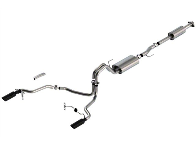The BORLA Cat-Back system 140878BC was specifically designed to enhance the power and sound of the Ford F-150 equipped with 3.3L engine. It includes 4" black chrome on T-304 stainless steel tips and a split rear exit configuration. Using BORLA Stainless Steel Polish p# 21461 is NOT recommended with these black chrome tips. We suggest cleaning the tips with hot water and a microfiber cloth. The entire system is made of T-304 stainless steel and utilizes computer numerical control (CNC) manufacturing techniques that ensure an accurate fit. This system features the S-Type sound level that gives you an aggressive sound level with no drone. It is also available with bright chromed tips (part number 140878). There are also systems available for the 3.3L F-150 that offer different options for sound level, tip finish and tip exits. Add adapter 60556 for Crew Cab with Standard Bed (6' 7") 157.2" Wheelbase wehicle. Add adapter 60564 for Extended Cab with Long Bed (8' 2") 164.1" Wheelbase vehicles. All this is backed by our unsurpassed Million Mile Warranty.