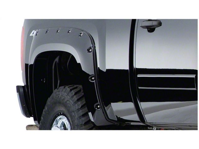 For extreme off-road use, there's nothing else like Bushwacker Cut-Out Fender Flares. Each set of Cut-Out Fender Flares is individually designed for your truck, to maximize off-road wheel travel and maintain adequate tire coverage. That custom approach means a smoother appearance, greater strength, and easier bolt-on installation with tough stainless steel hardware. Cut-Out Fender Flares are made from thick, warp-proof Dura-Flex 2000, our own proprietary material, engineered for added durability and flexibility in severe conditions. Its UV protection guards against chalking, while its pro-grade matte black finish looks great as-is, or custom painted to create your own personal look.