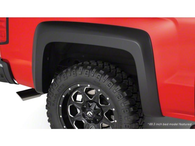 You've equipped your vehicle with oversize wheels and tires for serious off-road traction and clearance. Now you need extra tire coverage to protect your rig's body and maybe even comply with local laws. Bushwacker Extend-A-Fender Flares deliver premium-grade protection and style matched to oversized tires, yet as tough as they are, they go on easily with no drilling required. You can install them in minutes and enjoy them for years. Our exclusive Dura-Flex 2000 material is designed for added durability and flexibility with built-in UV protection. Your Extend-A-Fender Flares resist chalking, cracking, and warping, whether you leave them with their OEM-style matte black finish or paint them for a totally personalized look. Either way, your truck will look factory-equipped for your off-road tires. Extend-A-Fender Flares go on easy, perform tough, and look great.