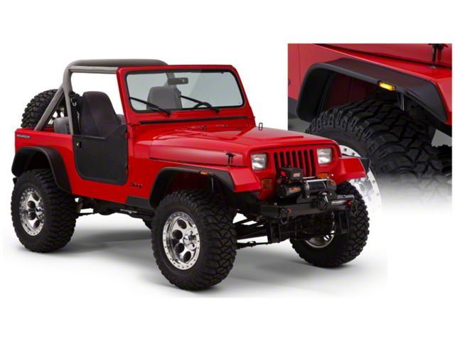 Be ready for anything: Equip your Jeep with Bushwacker Flat Style Fender Flares. They're the first and only flat style flares made to absorb impact using our proprietary Dura-Flex 2000 TPO the thickest, most flexible material available. Flat Style Fender Flares maximize your tire coverage and wheel articulation for intense off-road use. Yet they're carefully engineered to install with a minimum of extra tools and bodywork (see the installation guide for your specific vehicle for details). For example, our mounting brackets bolt straight onto your Jeep for added strength and simpler fitting. Our design integrates neatly with the factory rocker guards, and incorporates DOT-compliant LED side marker lights and fully molded wheel well protection. The flares are 100% UV protected, too, to stop chalking in its tracks. If you want the look and the real-world performance that best fits an American icon, nothing goes with your Jeep better than Bushwacker Flat Style Fender Flares.