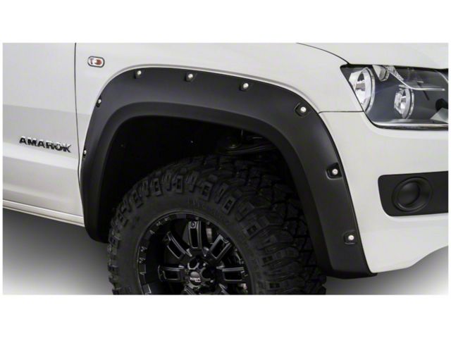 With their recessed stainless steel bolts and massive presence, Pocket Style Fender Flares are a Bushwacker original and an off-road icon. They give you the hard-core look of bolt-on flares, with no body-side sheet metal drilling required. Pocket Style Fender Flares are custom-designed for your vehicle to complement oversized tires and high-clearance lift kits. You can mount them right out of the box with their tough, OEM-style matte black finish they're UV protected so they won't chalk. You can also paint them to match or accent the body color for a factory-custom look. Pocket Style Fender Flares are made from our thick, warp-resistant Dura-Flex 2000 material and tailor-made for added durability and flexibility on the trail. When you need maximum tire coverage with minimum time and effort, it's in the pocket. Pocket Style Fender Flares from Bushwacker.