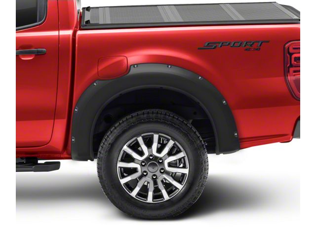 With their recessed stainless steel bolts and massive presence, Pocket Style Fender Flares are a Bushwacker original and an off-road icon. They give you the hard-core look of bolt-on flares, with no body-side sheet metal drilling required. Pocket Style Fender Flares are custom-designed for your vehicle to complement oversized tires and high-clearance lift kits. You can mount them right out of the box with their tough, OEM-style matte black finish they're UV protected so they won't chalk. You can also paint them to match or accent the body color for a factory-custom look. Pocket Style Fender Flares are made from our thick, warp-resistant Dura-Flex 2000 material and tailor-made for added durability and flexibility on the trail. When you need maximum tire coverage with minimum time and effort, it's in the pocket. Pocket Style Fender Flares from Bushwacker.
