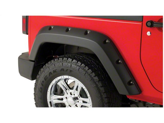 With their recessed stainless steel bolts and massive presence, Pocket Style Fender Flares are a Bushwacker original and an off-road icon. They give you the hard-core look of bolt-on flares, with no body-side sheet metal drilling required. Pocket Style Fender Flares are custom-designed for your vehicle to complement oversized tires and high-clearance lift kits. You can mount them right out of the box with their tough, OEM-style matte black finish they're UV protected so they won't chalk. You can also paint them to match or accent the body color for a factory-custom look. Pocket Style Fender Flares are made from our thick, warp-resistant Dura-Flex 2000 material and tailor-made for added durability and flexibility on the trail. When you need maximum tire coverage with minimum time and effort, it's in the pocket. Pocket Style Fender Flares from Bushwacker.