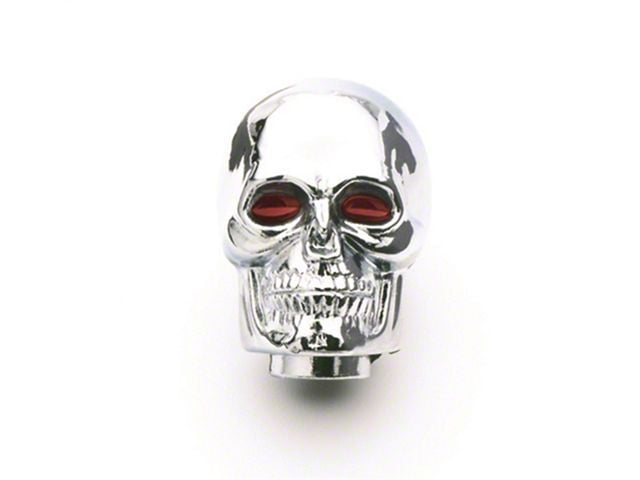 Designed for the hard-core enthusiast, this skull shifter knob is sure to draw attention to any interior. Crafted from solid, heavyweight metal, it is beautifully polished and chrome-plated for long-lasting style, and will fit 5/16 to 1/2 inch diameter shifter sticks. Complete with adapters, set-screw, and hex key for a fast, easy installation. Fit all 5/16 to 1/2 inch diameter shifter sticks.