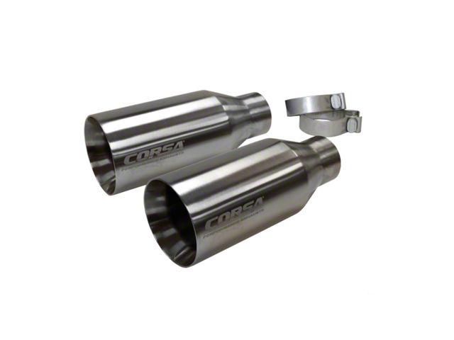 CORSA Performance Pro-Series tips are dual-walled stainless steel, designed to protect against heat distortion and maintain visual appeal. Each tip features high-definition, precision laser engraving for unmatched detail. This tip kit is specifically designed to fit directly to CORSA exhaust systems for the 2017-2020 Ford F-150 Raptor with a 3in inlet and 5in outlet.