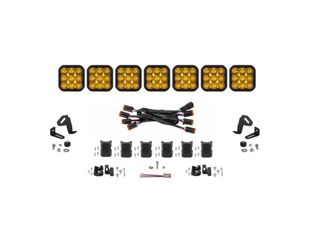 OverviewUsing our patent-pending CrossLink technology this kit links eight SS5 LED pods together into a single lightbar. Featuring the highest output intensity of any 5-inch LED pod on the market the LED pods included in this kit have been designed for maximum functionality with custom-engineered TIR optics all in a durable package.Focused. Traditional optics like reflectors or simple lenses lose light internally and to glare so not all of the light shines on target. Instead the custom-engineered TIR optic in the SS5 collects all of the light from the LED and directs it only where you need it drastically reducing glare and improving total efficiency.Selectable Backlight. The Stage Series 5inch LED Pods included in this kit feature a selectable backlight with eight different color options. Selecting your backlight color is easy - simply alternate the power on and off. There s no complicated programming with a controller! The SS5's backlight fully illuminates the TIR optic providing unique accent lighting that you won't find on other LED pods. NOTE: Due to the yellow lens the Yellow kit is only available with an Amber backlight color.Simple connections. All SS5 LED pods feature a custom-molded DT type Deutsch-style connector. A DT wiring harness is included in the kit to connect the pods together along with a 6-inch pigtail with bare leads. For installation you can wire yourself use an off-the-shelf Deutsch DT sized wire harness or use a Diode Dynamics wire harness.