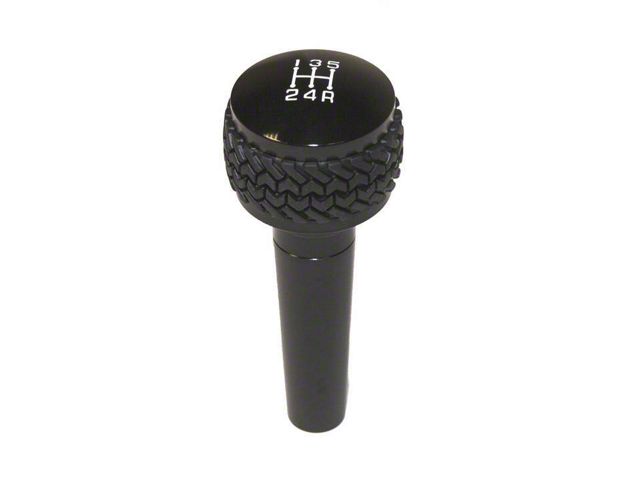 DV8 Off Road's shift knobs are made from billet aluminum and feature our patented 'Tired Tread' design grip which not only feels good when resting your hand on it, but also provides a better tactile feel when it comes time to throw a shift. Features: Shift Knob and Lever 'Tired Tread' Design Grip, Transmission: 5-Speed, Material: Billet Aluminum, Color: Black, Sold As: Each, Fits: 1997-06 Jeep TJ.