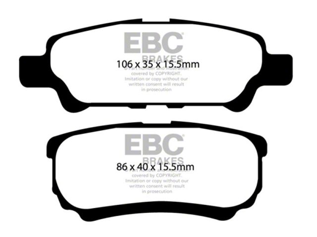 There are TWO reasons our customers love Redstuff, First because they are the lowest dust pad we have encountered by reducing dust by 60-90-percent. Plus the minimal dust you see is very easily removed with a simple sponge wash as it contains no steel fibre particles as in ALL OTHER pads. Second they brake like an alligator right from cold (as good as Original pads or better) and just get better as they heat up.This material is a Synthetic Fiber based brake compound enhanced with ceramic particles. If you have previously tried EBC redstuff (pre-ceramic compound) this material is light years ahead. It lasts longer; it brakes better and is quieter. Being a hard wearing pad, bed-in times can be as long as 1000 miles and drivers must be patient until the pad takes up the shape of their disc (brake rotor). This is a truly impressive fast road pad for repeated heavy braking.It emits far less dust than semi-metallic pads and has been proven to stop a passenger car/sedan/sport compact/hot hatch 13 metres quicker than OEM pads from 100mph/160kph. Features EBC Brake-In surface coating which conditions rotor surface and accelerates pad bed-in. Nominal friction coefficient 0.5 with approx. 50-percent dust reduction.Most EBC Red Ceramic pads are approved to ECE R90 brake safety regulation.